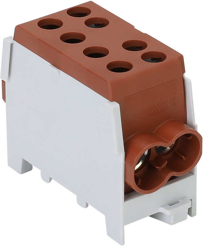 Főáramköri leágazó kapocs dupla, sínre szerelhető, barna 6-35mm2