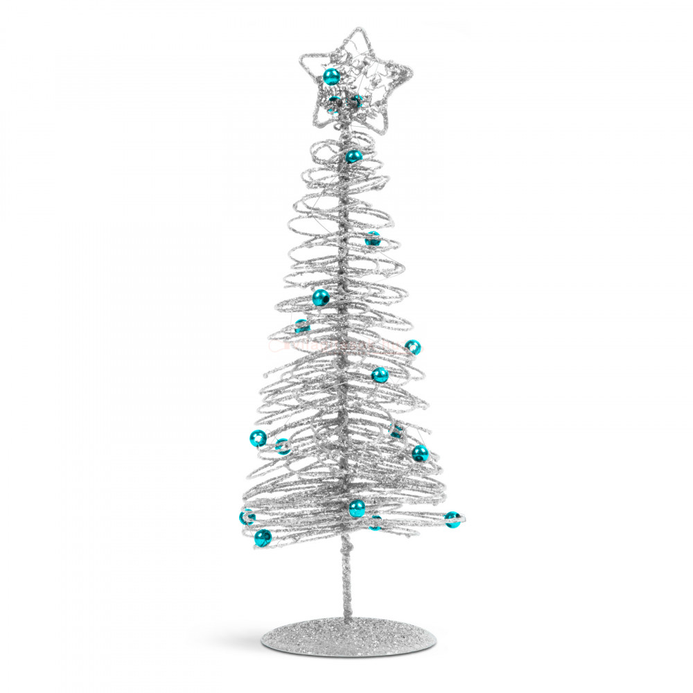 Karácsonyi, glitteres, fém karácsonyfa - 28 cm - ezüst