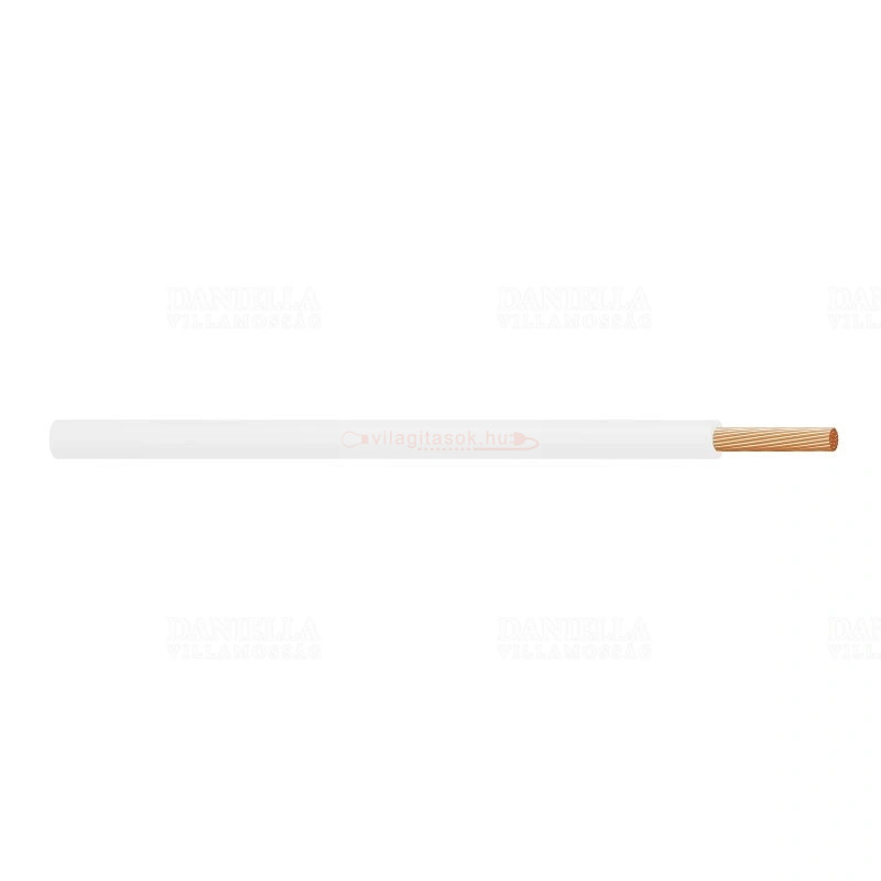 0,75 mm2 átmérőjű sodort erű réz vezeték fehér PVC szigeteléssel.