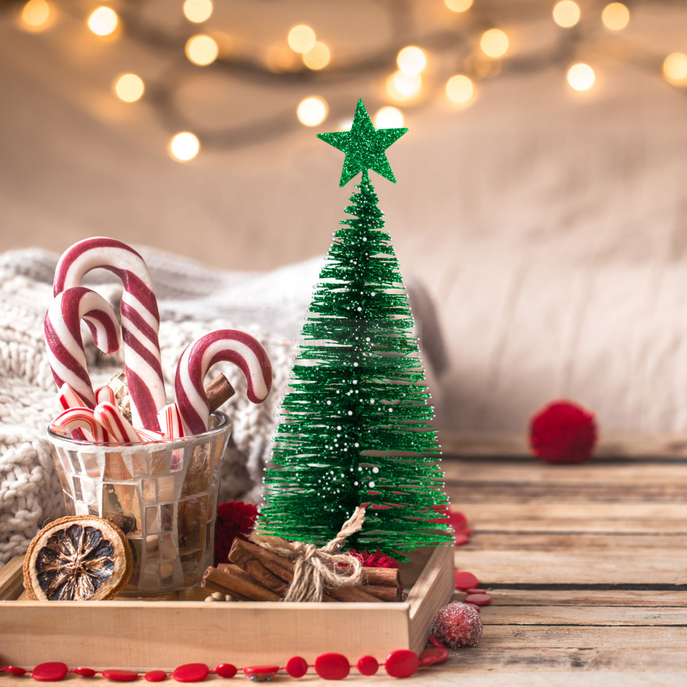 Mini dekor műfenyő - glitteres - 18 cm - 4 szín