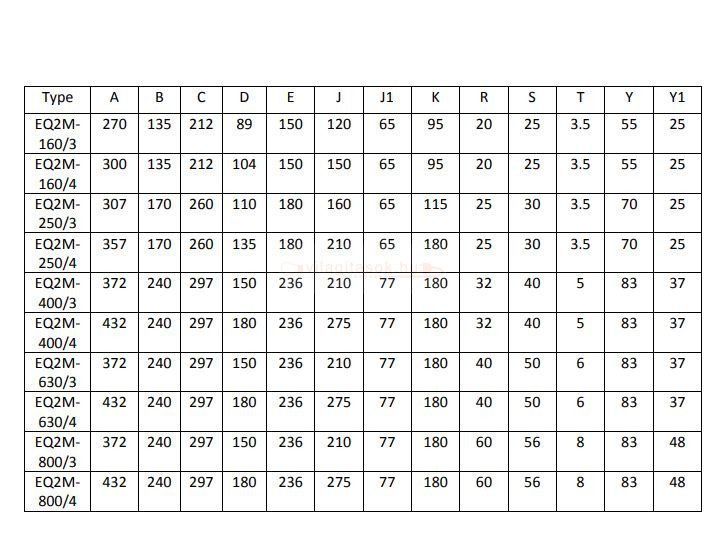 Az EQ 2 M xxx szériájú három-, illetve négypólusú terhelésmegszakítók beépíthetők központi elosztószekrényekbe és alkalmazhatók áramkörök szétválasztására, két áramforrás közötti átkapcsolásra és generátorok bekapcsolására, mivel nem érzékenyek a hálózati frekvencia ingadozására. Nagy mechanikai szilárdság, kopásállóság. Kezelésük egyszerű és
