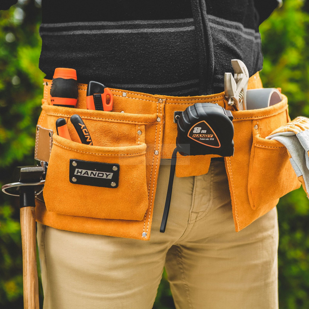 Professzionális, bőr szerszámtartó öv - 9 zseb + kalapácstartó