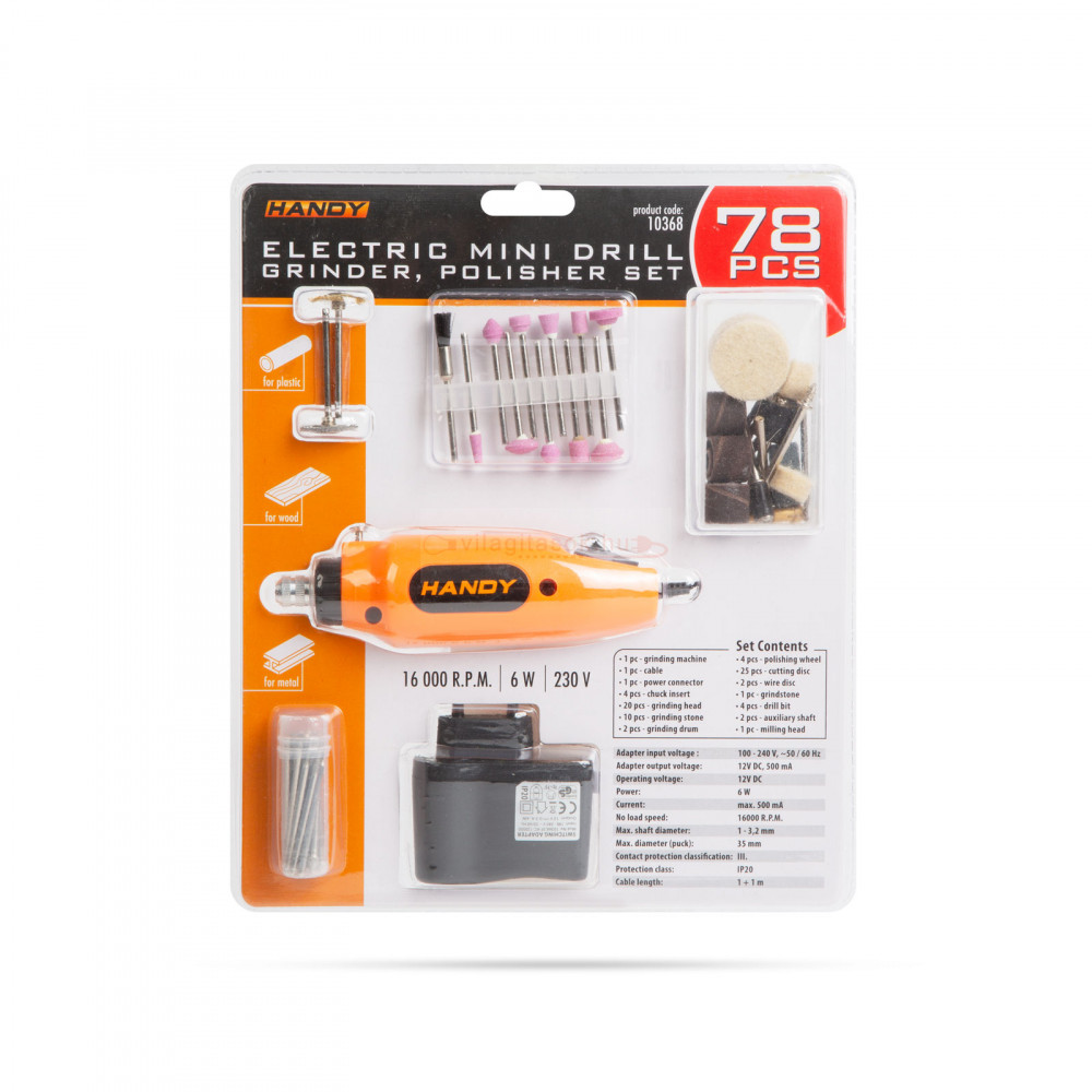 Panelfúró, csiszoló, polírozó szett - 78 részes - 230 V