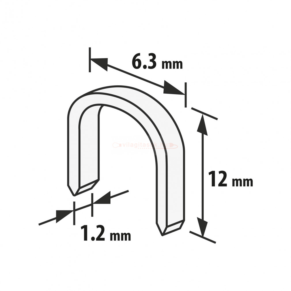 Kulcsszavak: Tűzőkapocs - 1,2 x 6,3 x 12 mm - 1000 db, minőségi termék, univerzális megoldás