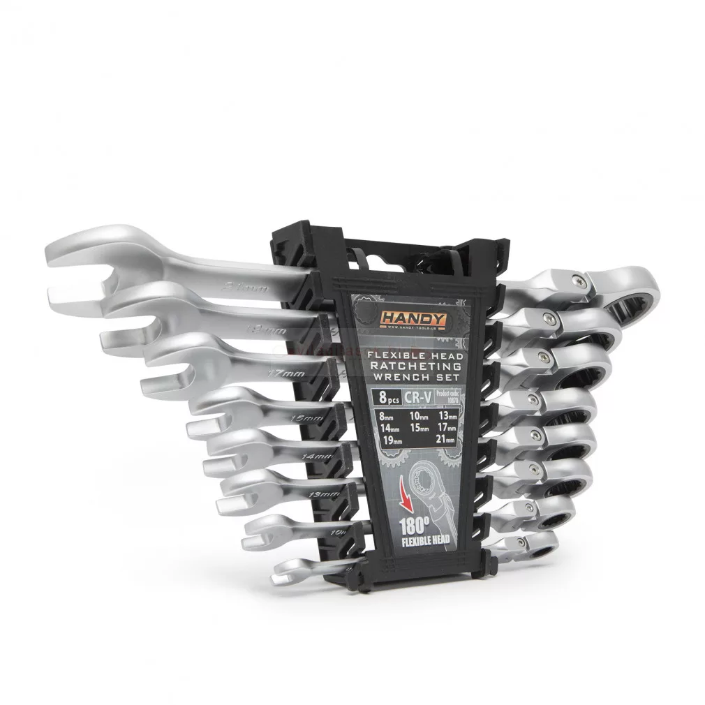Racsnis csillag-villáskulcs készlet - 8,10,13,14,15,17,19, 21 mm - flexibilis fejjel