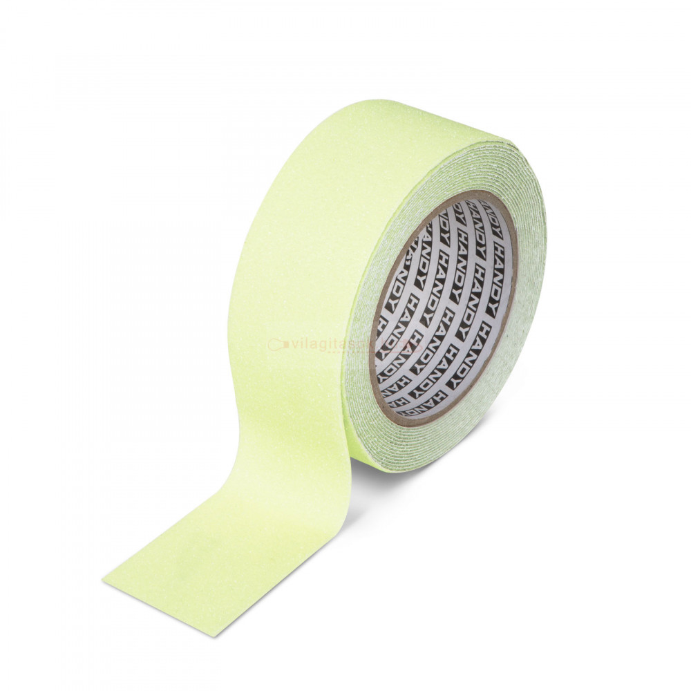 Durva, érdes felülettel rendelkező csúszásgátló ragasztószalag. Rendkívül jó ragadóképességgel rendelkezik, időjárásálló tulajdonságának köszönhetően használható kültéren és beltéren egyaránt. A foszforeszkáló betétnek köszönhetően sötétben is észlelhető a jelölt terület. Ideális lehet lépcsők, gyárak, rámpák, sportpályák terület jelölésére és minden olyan helyszínen, ahol fontos a láthatóság és csökkenteni kell a síkosságot.