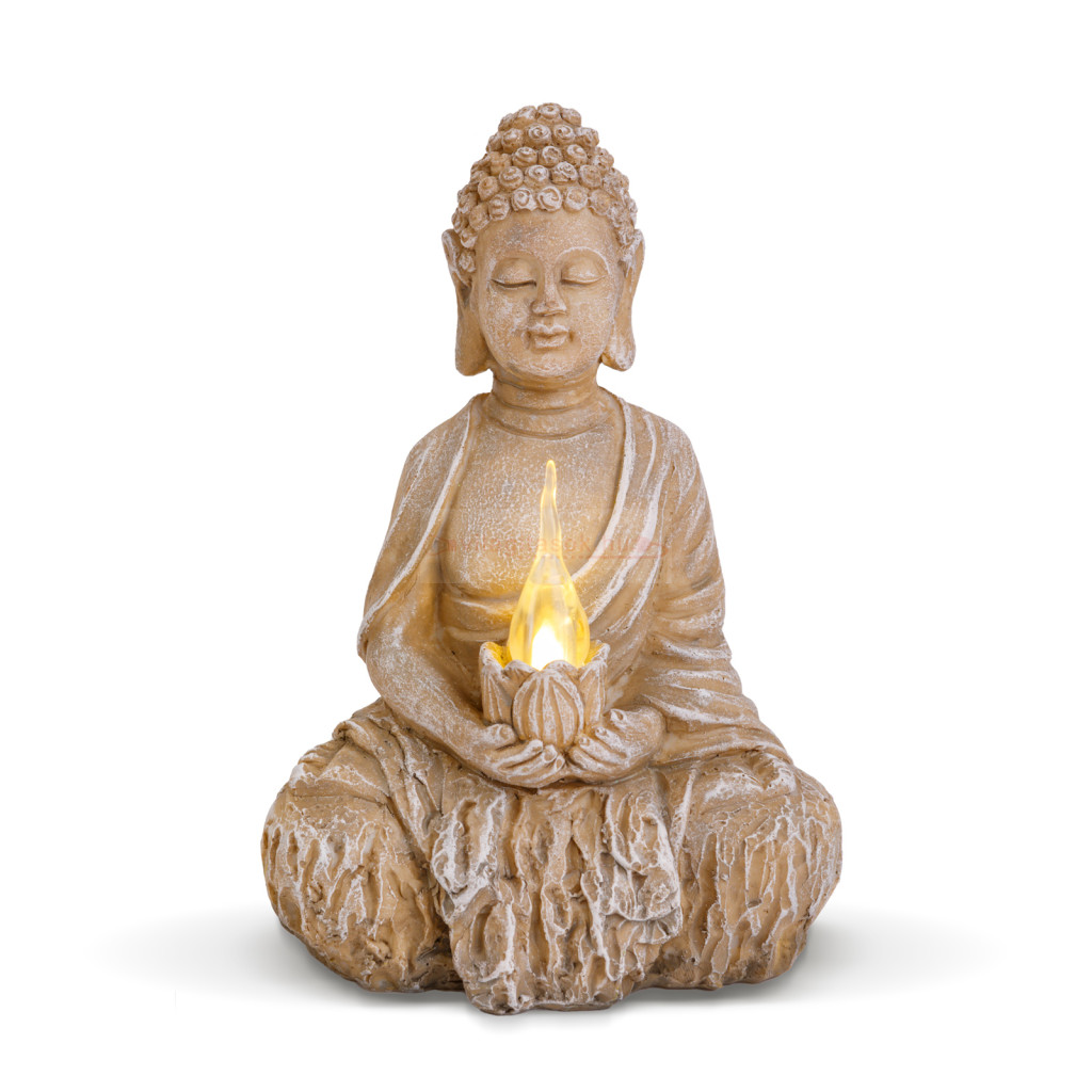 Szolár Buddha gyertyával - 1 melegfehér LED - 12,5 x 8,5 x 19 cm