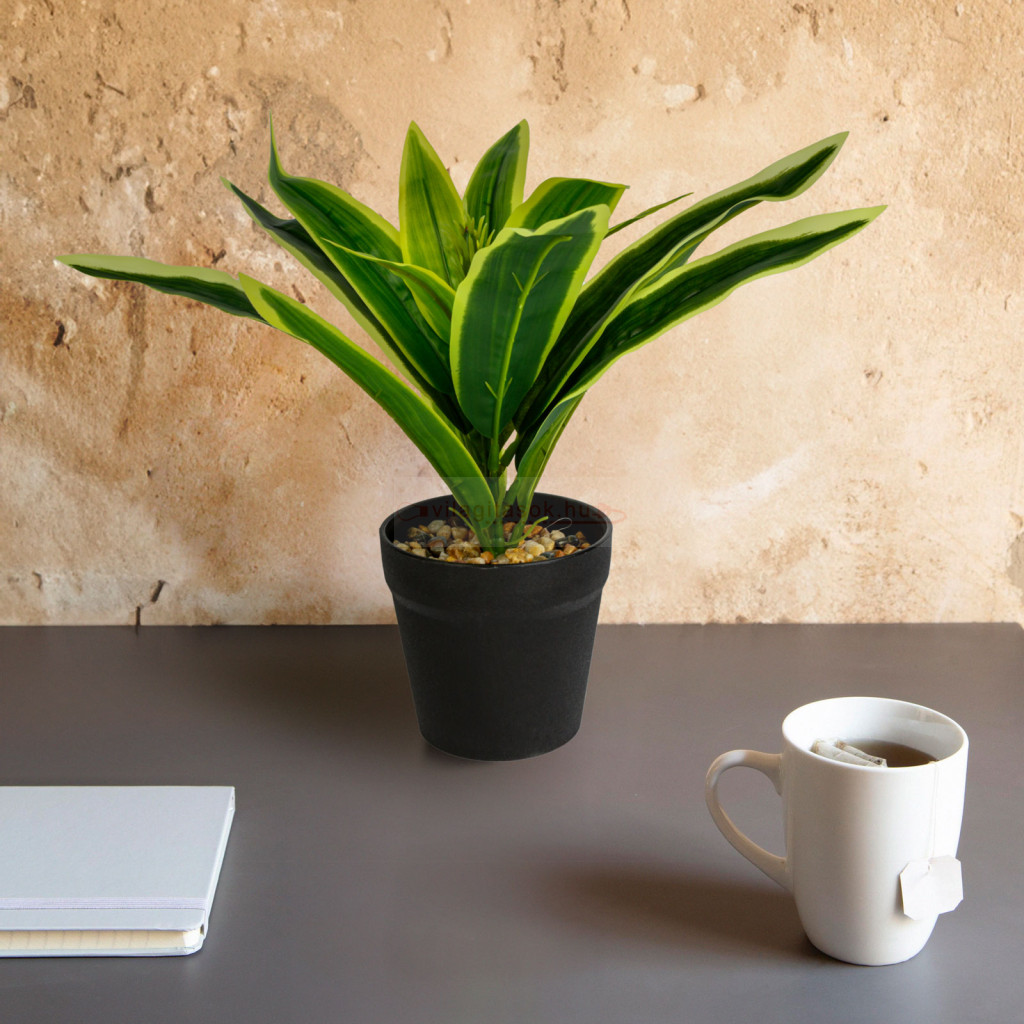 Műnövény dekoráció - zöld sáfrányfa - 20 x 8,5 cm csíkos levelű