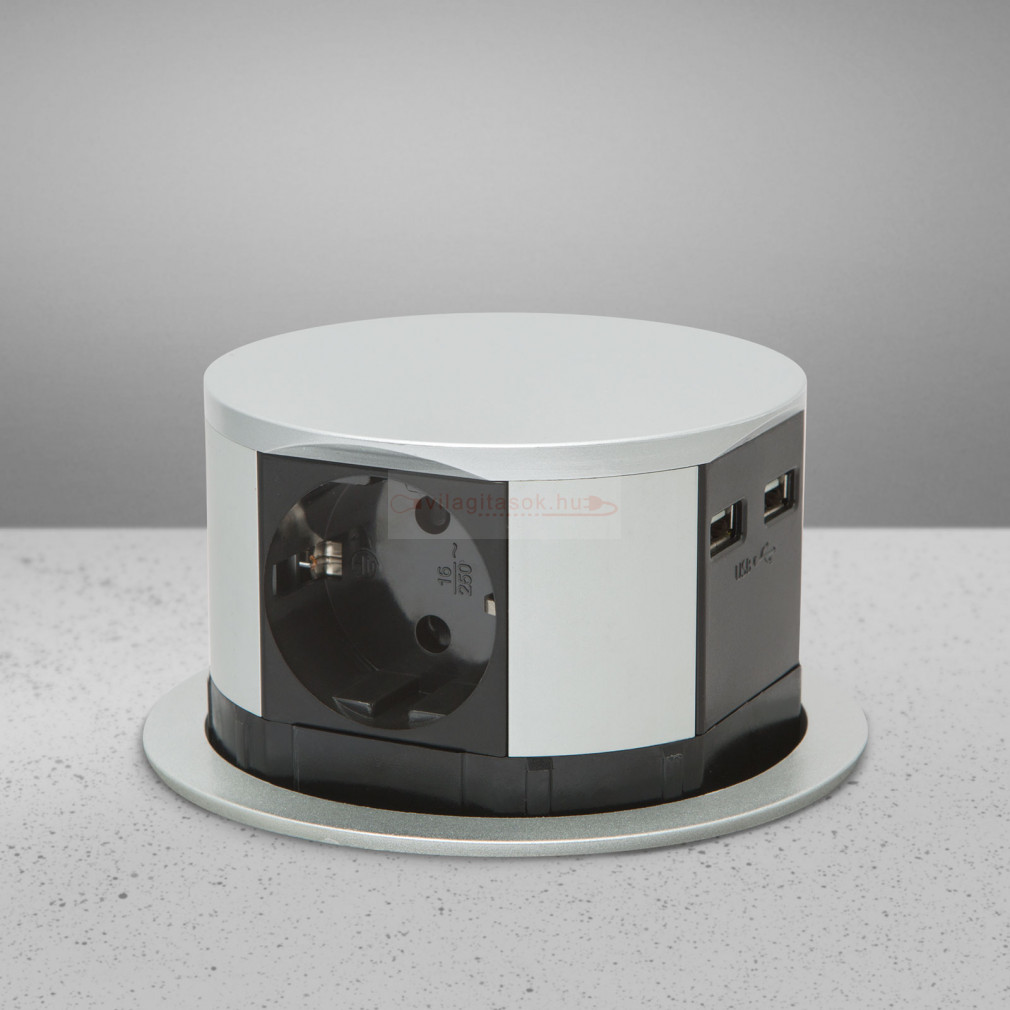 Irodai asztalba rejtett elosztó 3db dugalj 2db USB