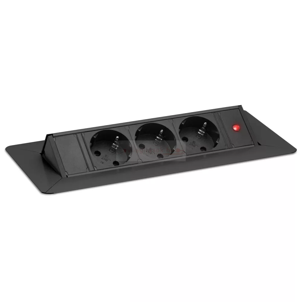 Süllyeszthető elosztó irodai és otthoni felhasználásra, ezüst felülettel, 3 db gyermekvédelemmel ellátott aljzattal. Asztala, bútora legyen mindig elegáns és rendezett, mégis funkcionális. A rejtett elosztó kiváló megoldás lehet ha már például kész konyhával rendelkezik, de nincs elegendő konnektor a kívánt helyen. Ilyenkor falvésés és villamos hálózat bővítés nélkül, remek alternatíva lehet egy rejtett elosztó. Egy mozdulat és máris rendelkezésre áll 3 szabad konnektor. Ideális lehet olyan elektromos eszközökhöz, amit nem folyamatosan használunk, kenyérpirító, vízforraló... Ha használaton kívül vannak, az "flip-up" elosztó egy mozdulattal elrejthető, ezzel is megkönnyítve például a takarítást, valamint rendezett, letisztult külsőt ad a helységnek.