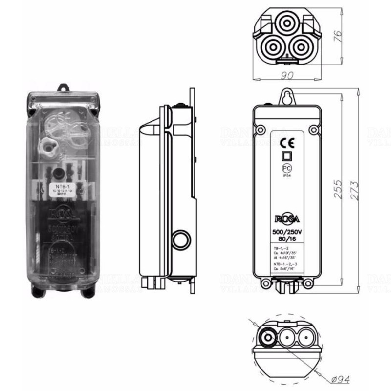 Közvilágítás csatlakozó doboz ROSA NTB-1 egyáramkörös, 5P sorkapoccsal IP54 5x6-16mm2 kábelekhez