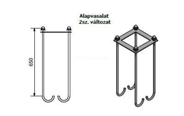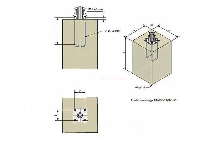 Talpas teleszkopikus acél lámpaoszlop beton alapba helyezendő vasalata 6 méter magasságíg.