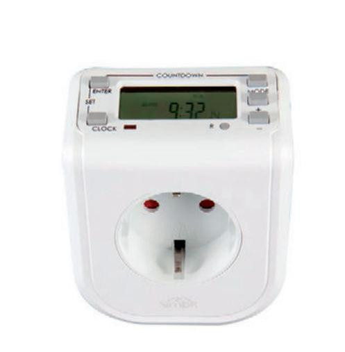 Digitális időzítős dugalj heti program funkcióval és újratölthető NI-MH akkumulátorral.