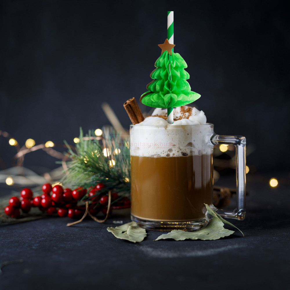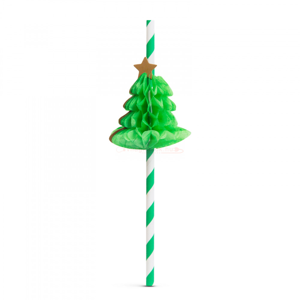 Papír szívószál - 3D fenyőfa - 197 x 6 mm - 12 db / csomag