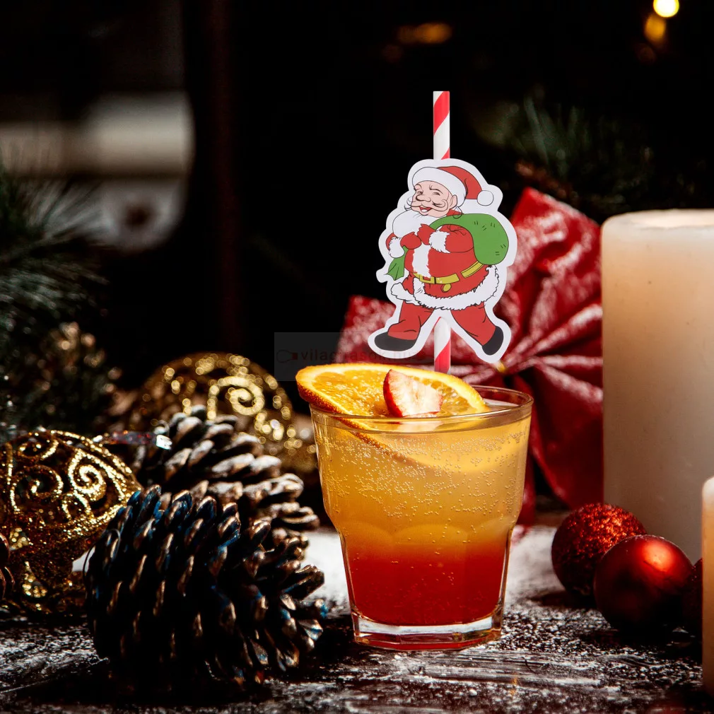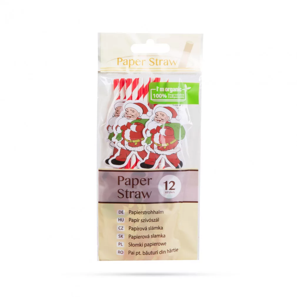 Papír szívószál - karácsony - 197 x 6 mm - 12 db / csomag