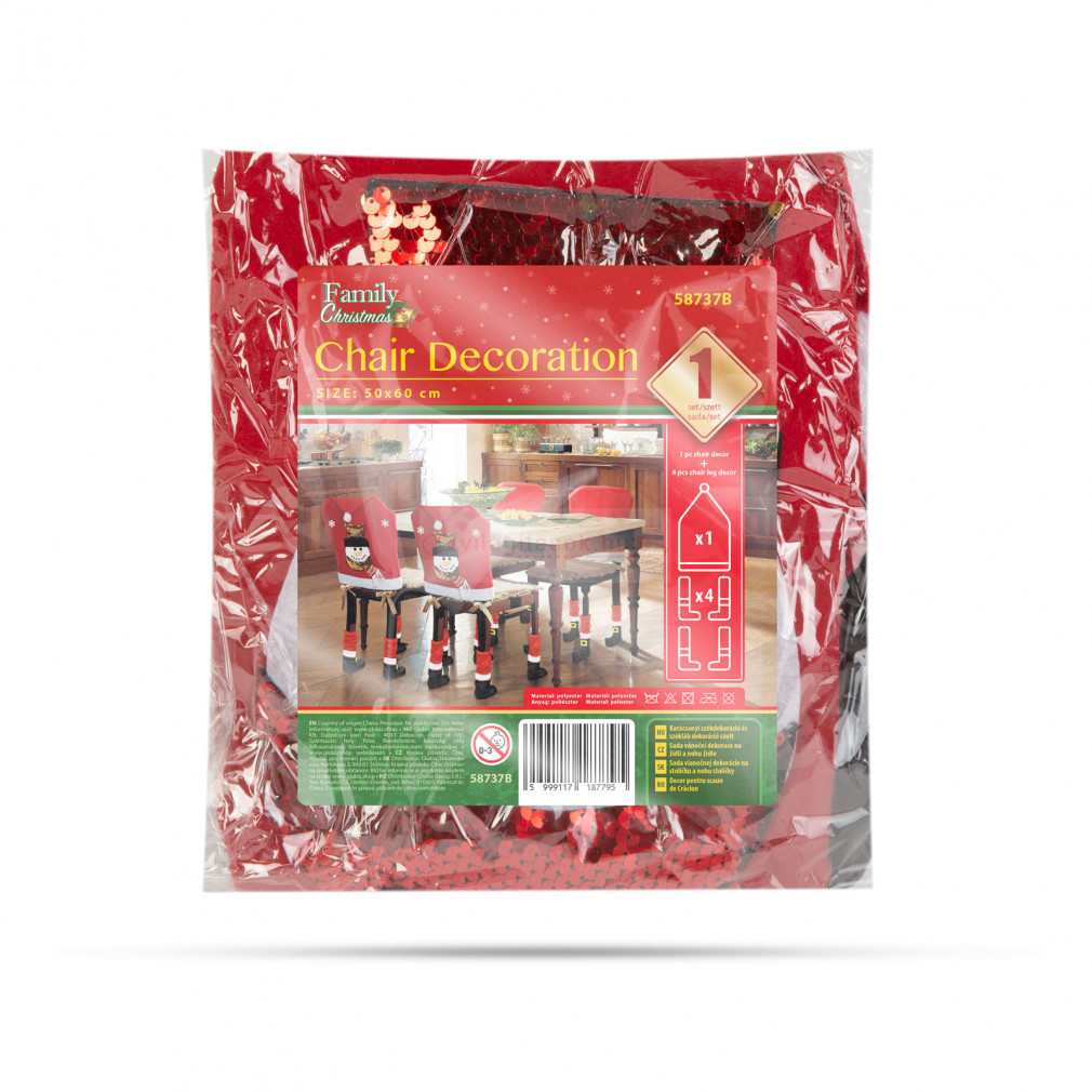 Öltöztesse otthonát ünnepi hangulatba ennek a székdekor szettnek a segítségével. A piros / fehér színek, minden ünnepi enteriőrben jól mutatnak. A nagy méret miatt a legtöbb székkel kompatibilis méret.