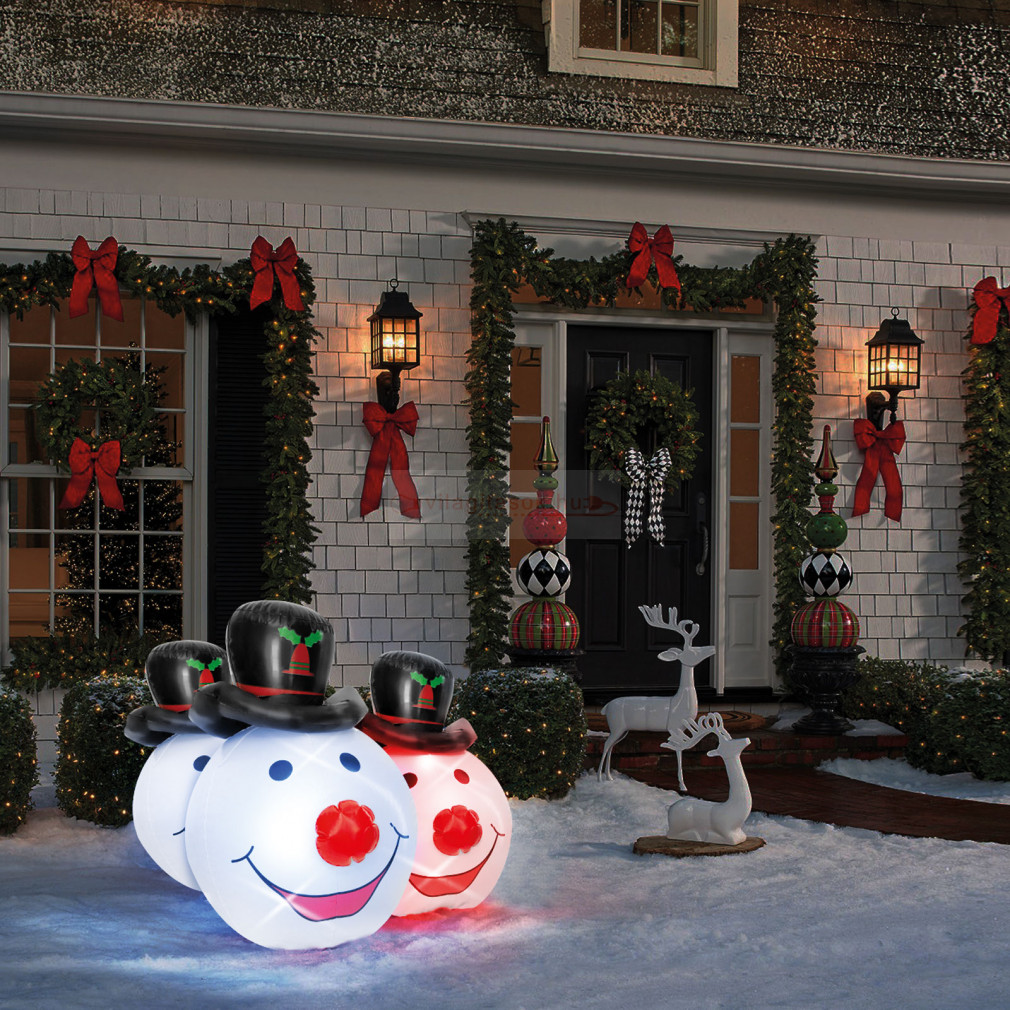 Felfújható hóemberfej - piros / kék LED-del