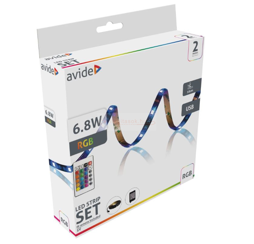 Led szalag bliszter 5V SMD5050 30LED RGB IP65 2m + IR 24 táv.