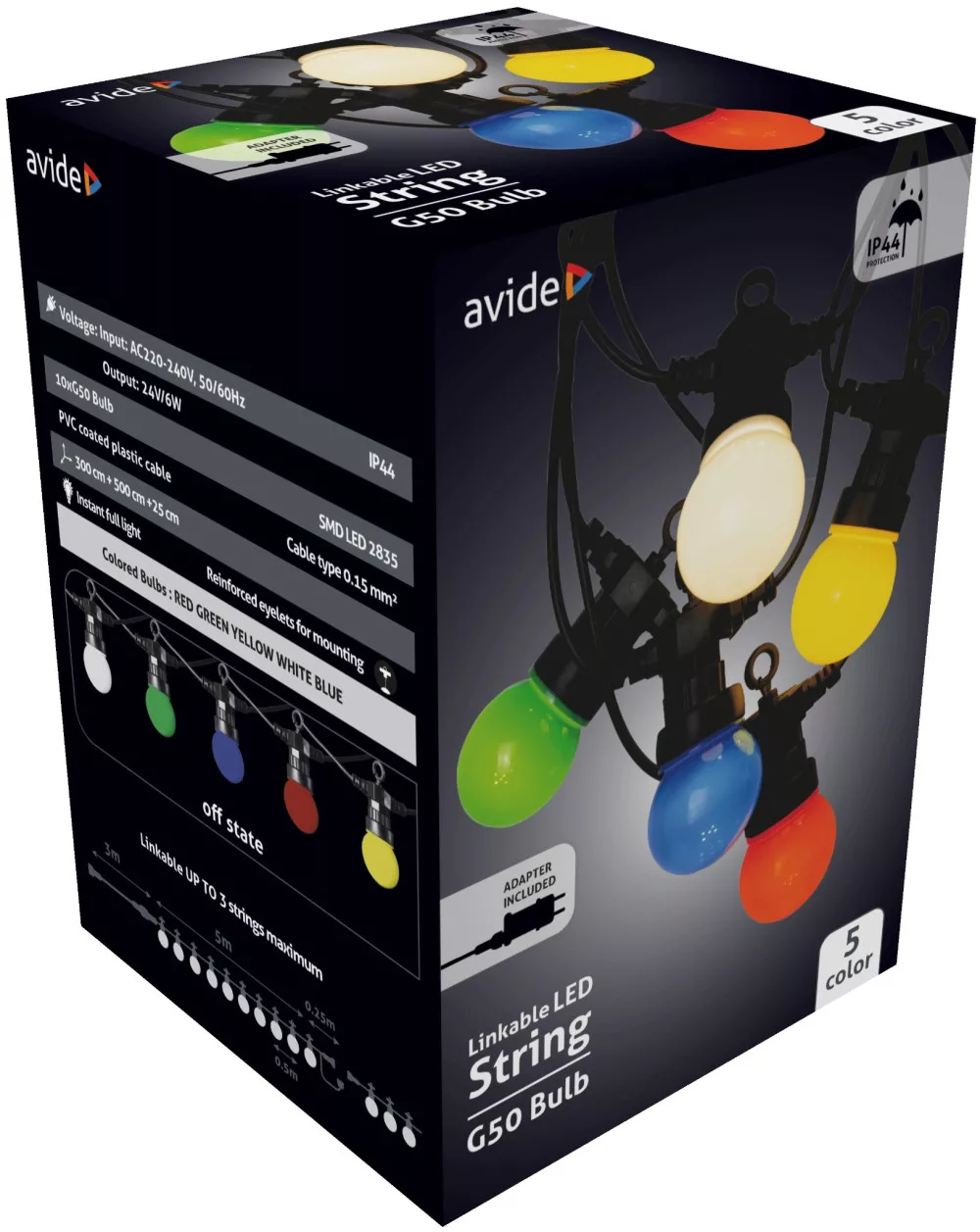 Avide Kültéri füzér 5m sorolható (Piros/Zöld/Kék/Sárga/Fehér)