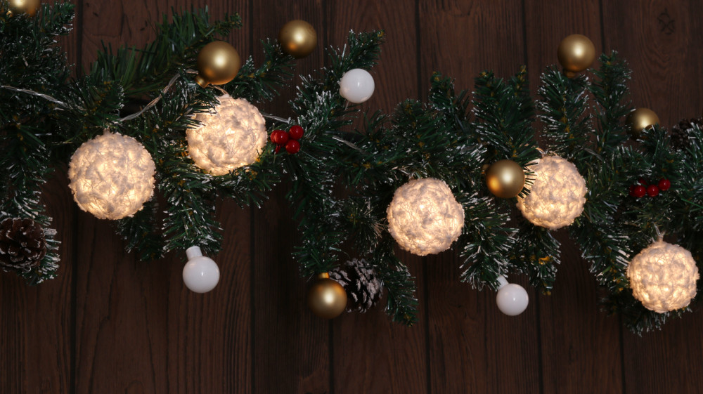 Karácsonyi LED fényfüzér dekoráció, fehér gömb, elemes, 6+18h, 10LED, 3000K, 2xAA