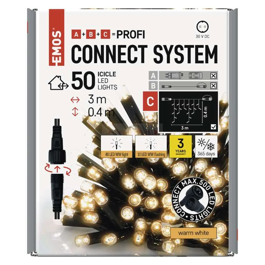 Akár 10 db ilyen fényfüzér egy mozdulattal összetoldható, és egy betápról üzemeltethető.