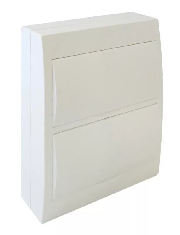 Falon kívüli elosztódoboz, fehér ajtóval, N/PE sínnel 24 Modul