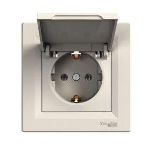 Schneider Asfora aljzat (dugalj) 2P+F, csapfedeles, komplett, bézs