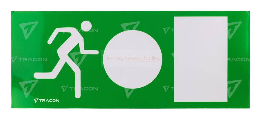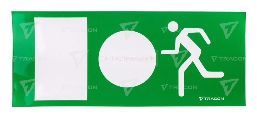 Led kijáratjelző lámpatest ragasztható piktogramokkal. A lámpa folyamatosan világít (állandó üzemű). Fogyasztása 4W, mely fogyasztás mellett apró akkumulátora a feszültség elvételekor könnyedén több mint 3 órán át mutatja a kijáratot. Tesztgomb segítségével ellenőrizhető a kijáratjelző lámpa akkumulátorának működése.
