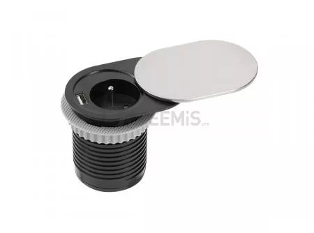 Asztalba süllyeszthető elosztó, 1 dugalj, 1 USB.