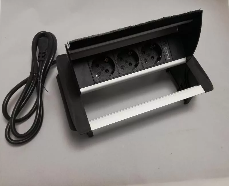 Asztalba süllyeszthető elosztó, 3db dugaljjal. Különlegessége, hogy fésűs kialakításának köszönhetően a beépített elosztót üzem közben is be tudjuk csukni. Ez által a süllyesztett elosztónknak nem szükséges nyitva lennie, ha abba csatlakoztattunk valamilyen készüléket.