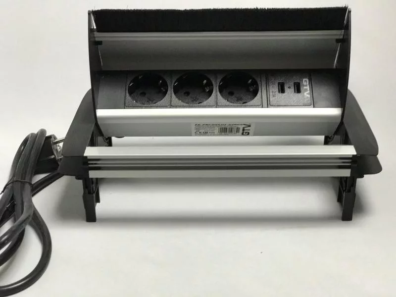 Asztalba süllyeszthető elosztó, 3db dugaljjal és 2db USB töltőhellyel. Különlegessége, hogy fésűs kialakításának köszönhetően a beépített elosztót üzem közben is be tudjuk csukni. Ez által a süllyesztett elosztónknak nem szükséges nyitva lennie, ha abba csatlakoztattunk valamilyen készüléket.