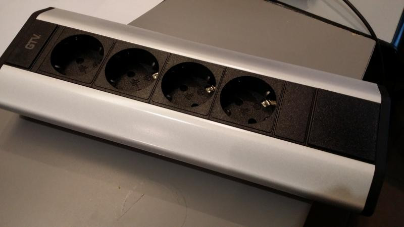 Asztali elosztó szürke, 4P, védettség IP20, kábel hossza 2 méter.