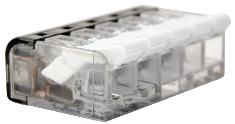 Csavar nélküli vezetékösszekötő, nyitható átlátszó 0,2-4mm2, 32A, 450VAC 5P