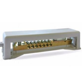 Csatlakoztatási lehetőségek: 7db 2,5-25mm2 tömör vagy max 16mm2 hajlékony vezeték. 1db 10mm-es huzalzászló. 1db max.30x3,5mm-es szalagvezeték. 15x10mm sárgaréz kapocssínnel Méret: 175x53x42,5mm