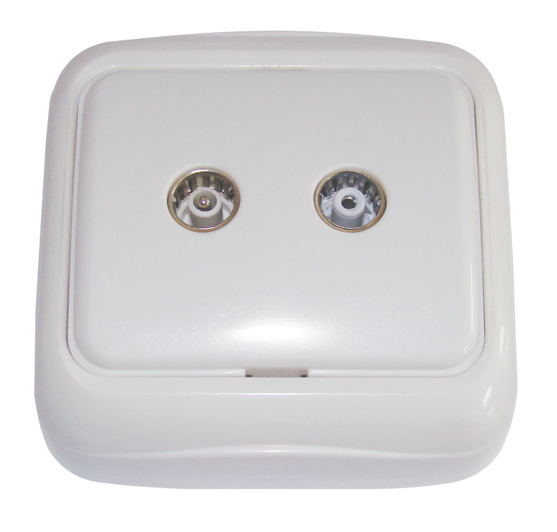 Esztétikus, a faltól kis kiállással felszerelhető beltéri falon kívüli TV-RD aljzat. Mérete alkalmassá teszi a régi szerelvénydoboz nélkül szerelt lakásokban a kapcsolók cseréjét. Ezen kívűl minden beltéri felhasználáshoz alkalmazható, ahol falon kívüli szerelést kívánunk kialakítani.