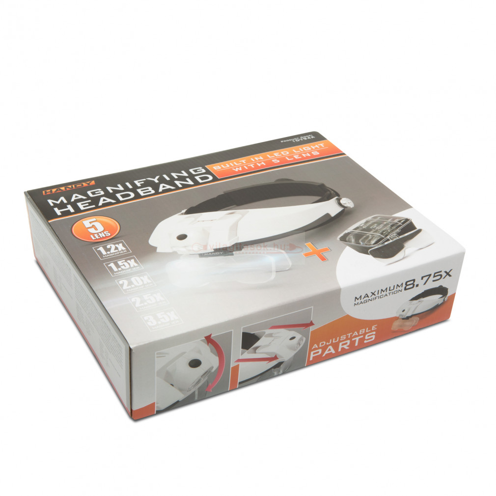 Rendkívül jól használható elektronikában, precíziós műszerekhez és otthoni barkácsolás céljára egyaránt. Alkalmanként szüksége lehet extra fényre a munkája során, ilyen helyzetekben tökéletes választás ez a nagyítós, LED-es eszköz. A fejpántos nagyító használata során, mindkét keze szabaddá válik, ezáltal könnyebb a munkavégzés. Az 5 db cserélhető lencse segítségével egy lencse használatával 1.2x, 1.5x, 2x, 2.5x illetve 3.5x-ös nagyítást alkalmazhat a munkaterületre, de lehetőgése van két lencse egyidejű használatára, így akár 3x, 4x, 4.5x, 5x, 5.5x, 6x nagyítás is elérhető. A fejpánt könnyedén beállítható bármilyen fejméretre (500 mm - 600 mm), a puha homlokrész kialakításnak köszönhetően kényelmes viseletet biztosít hosszabb idejű munkák során is. A 2 db LED megfelelő fénnyel látja el a szükséges munkaterületet.