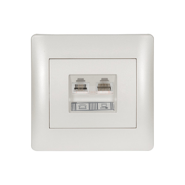 Rhyme telefon aljzat RJ11+számítógép aljzat RJ45 Fehér metál