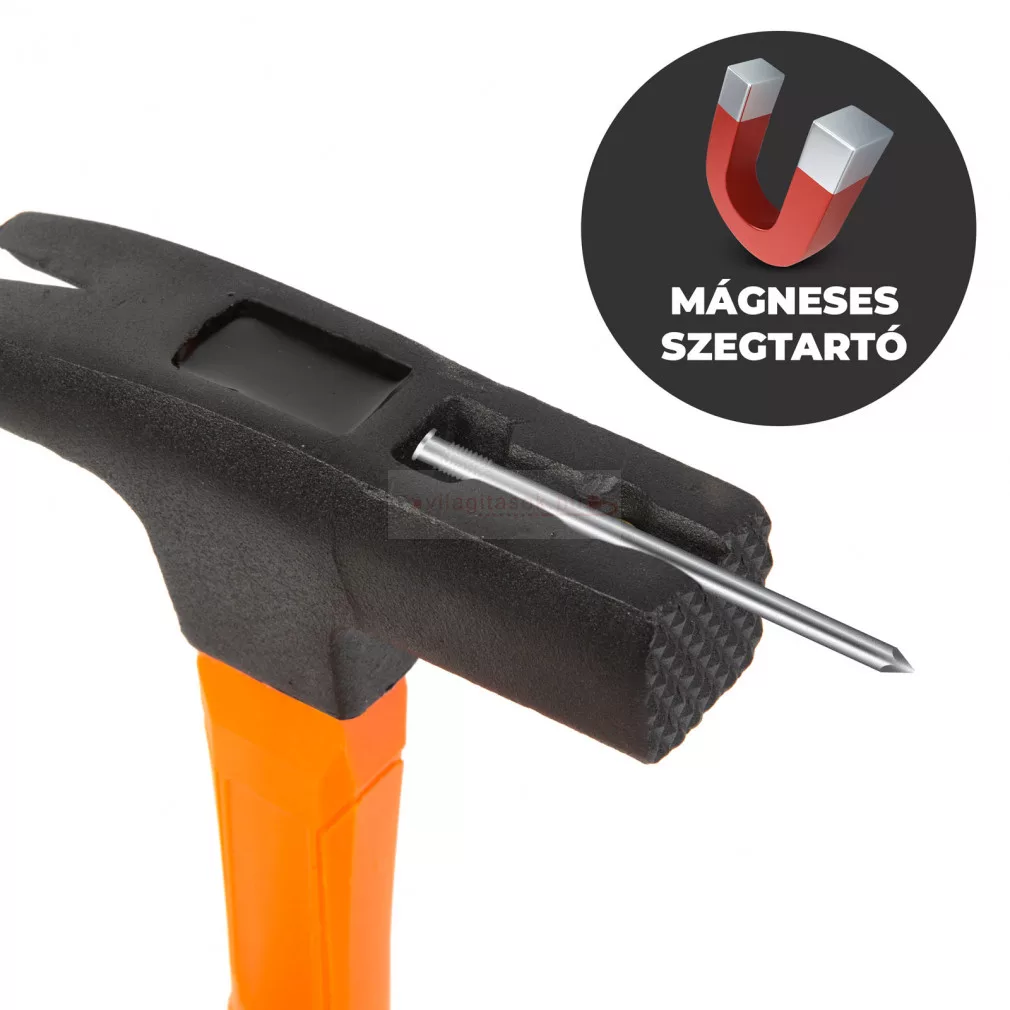 Professzionális ács kalapács mágneses szegtartóval üvegszálas nyéllel - 600 g