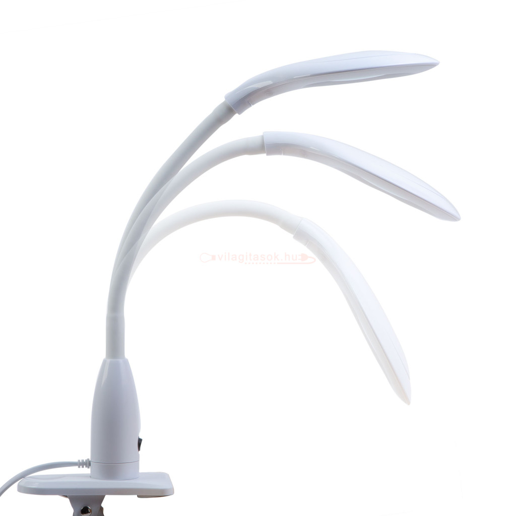 Műkörmös asztali LED lámpa nagyítóval csipeszes fehér