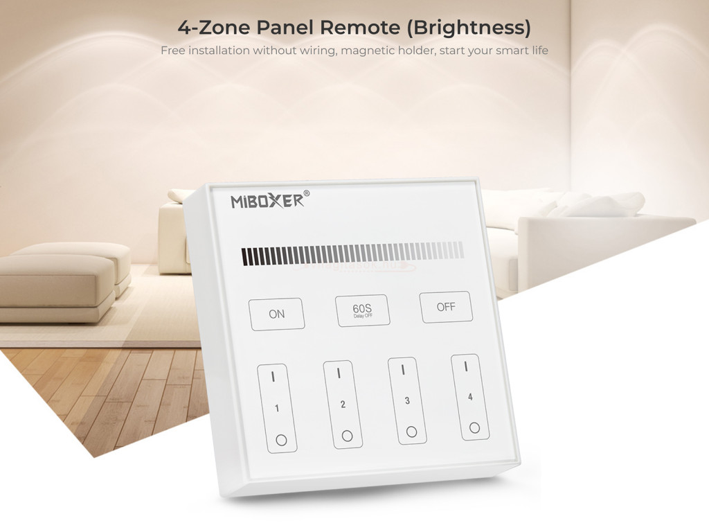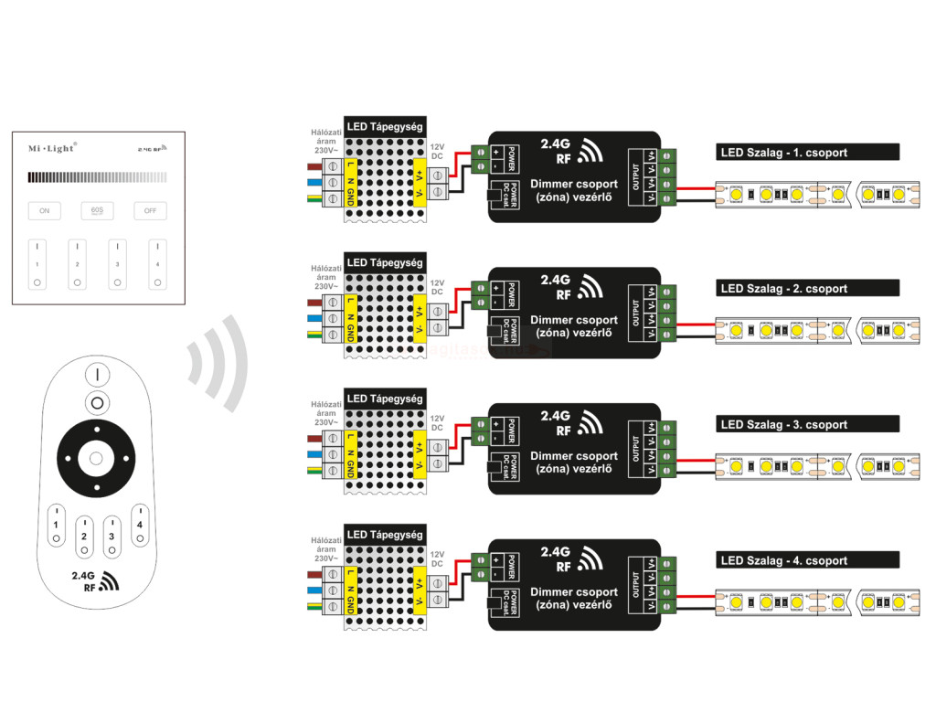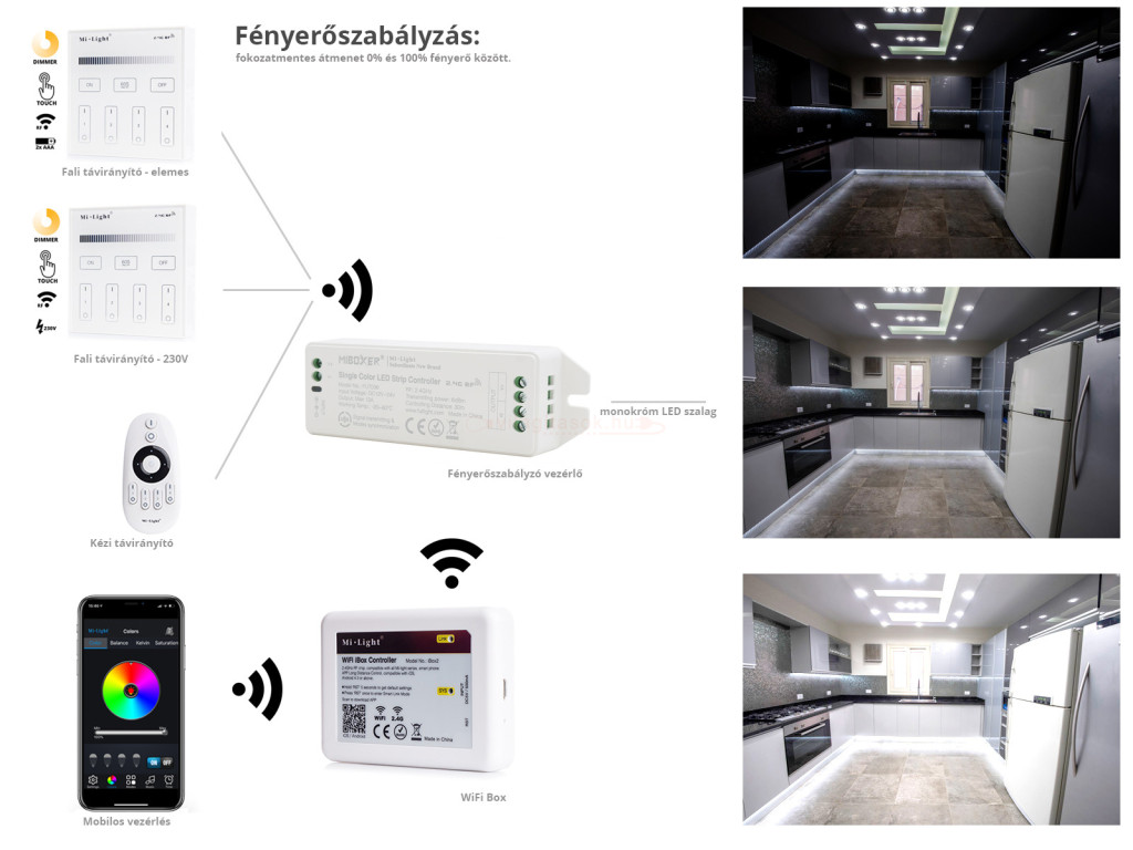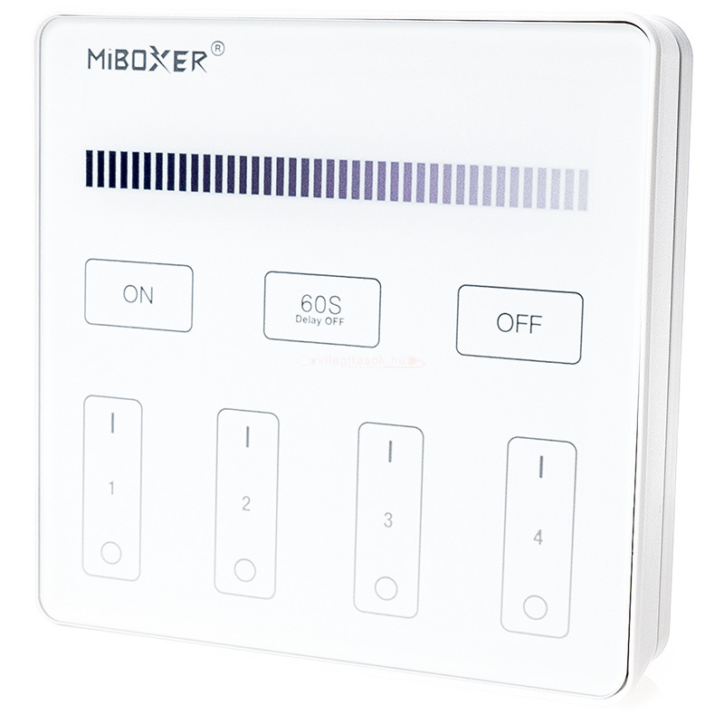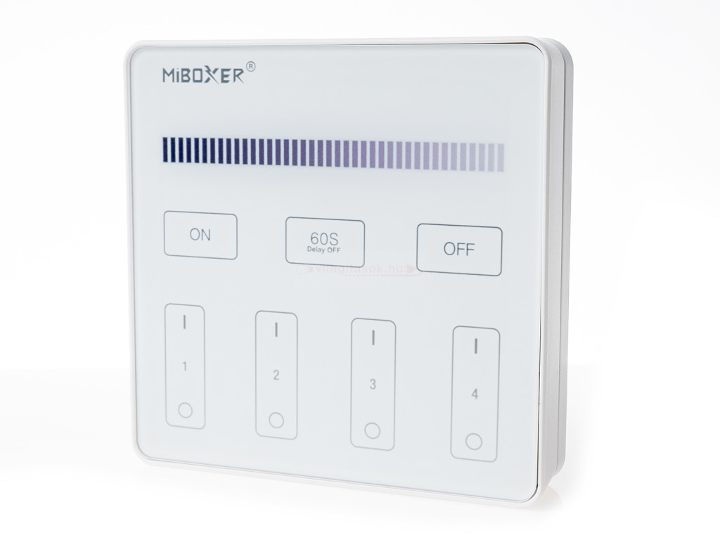 Falra építhető, érintésérzékeny, fehér üveg előlapos fényerőszabályzó LED vezérlő, kisfeszültségű LED termékekhez. Kapacitív érintésérzékeny felülettel ellátott, oldalfalba építhető egyszínű LED vezérlő, mely alkalmas az egy színű LED szalagok fényerőszabályozására.