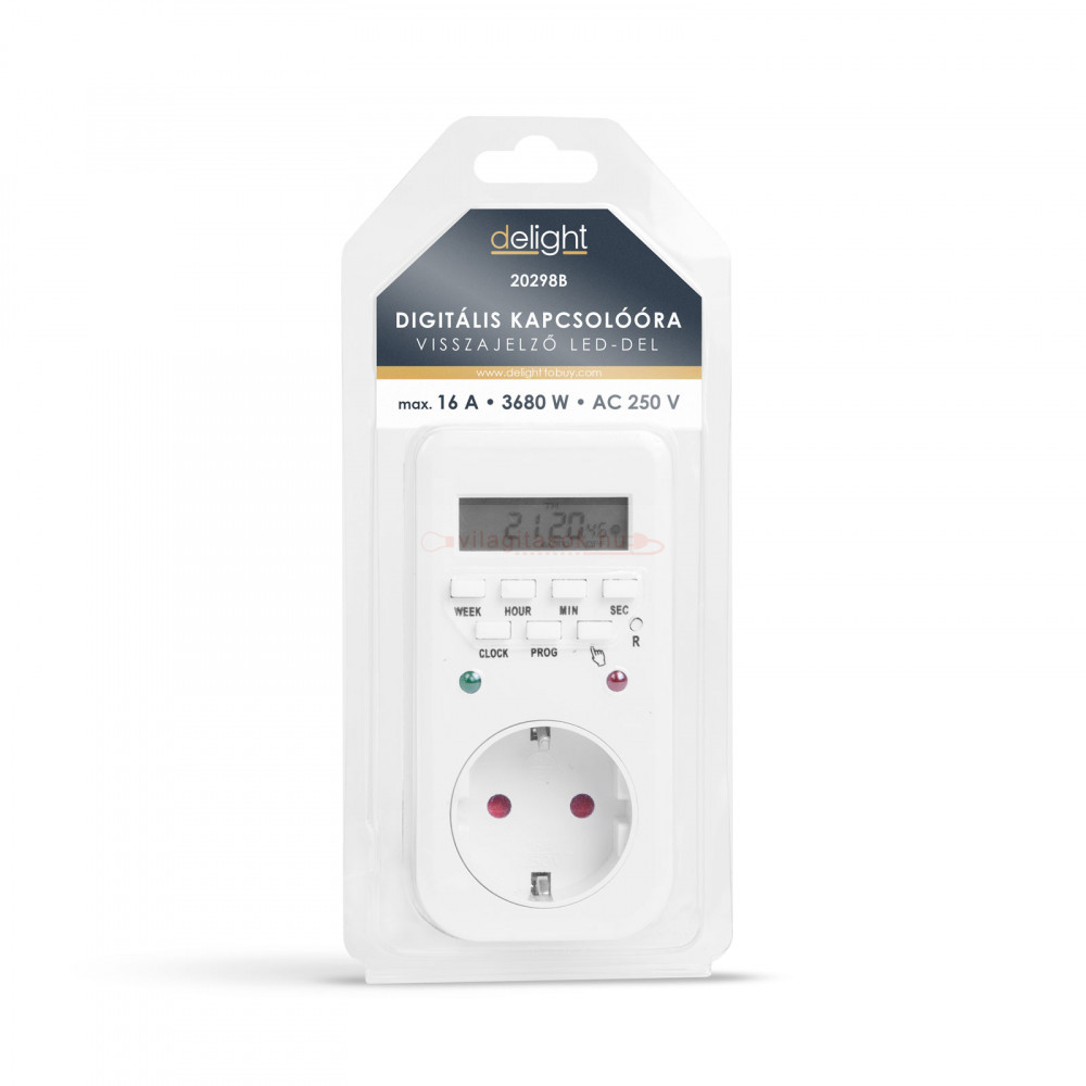 Digitális kapcsolóóra - visszajelző LED-del - 250V - 16A