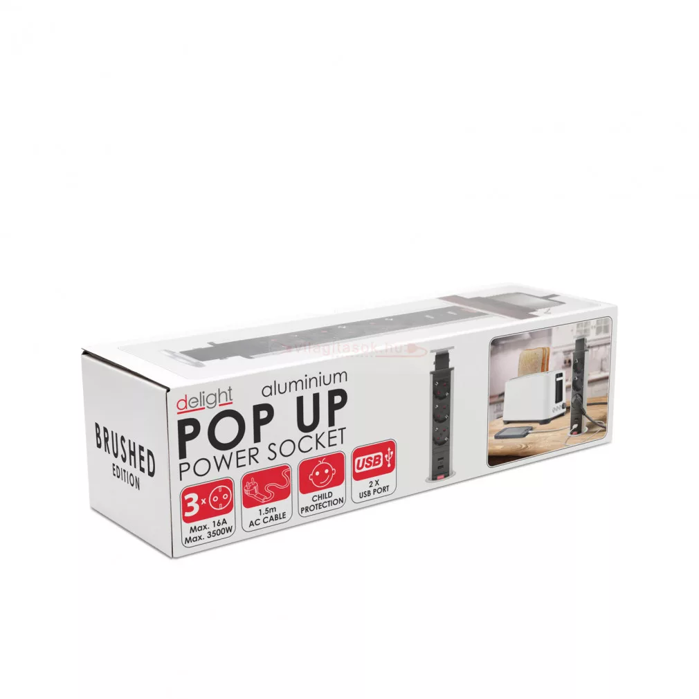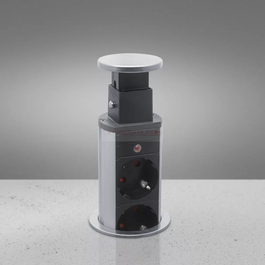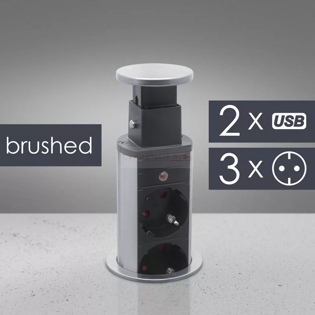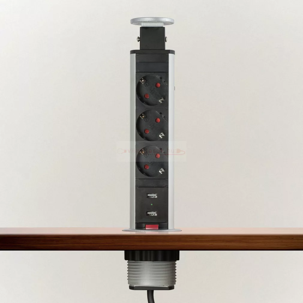 Irodai asztalba rejtett elosztó 3db dugalj + 2db USB kerek szálcsiszolt