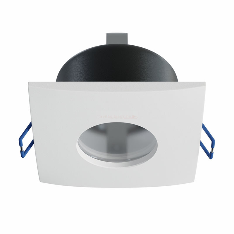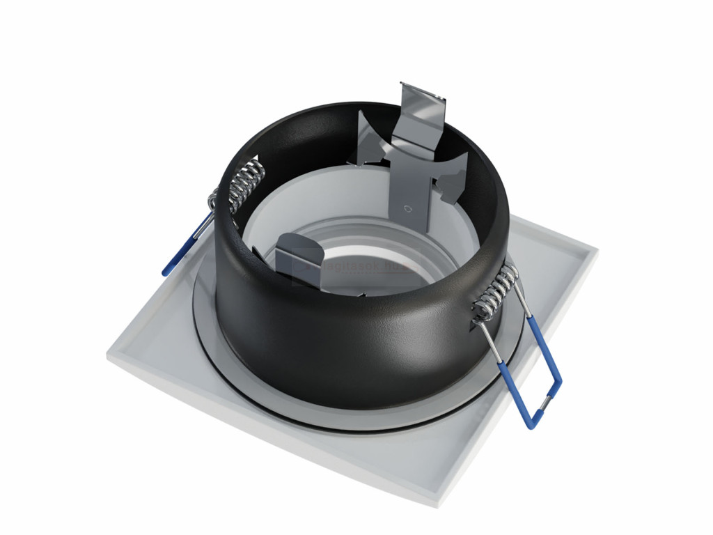 Kazettás és gipszkarton álmennyezetbe építhető, süllyeszthető szpot lámpatest, rugós füles rögzítéssel.