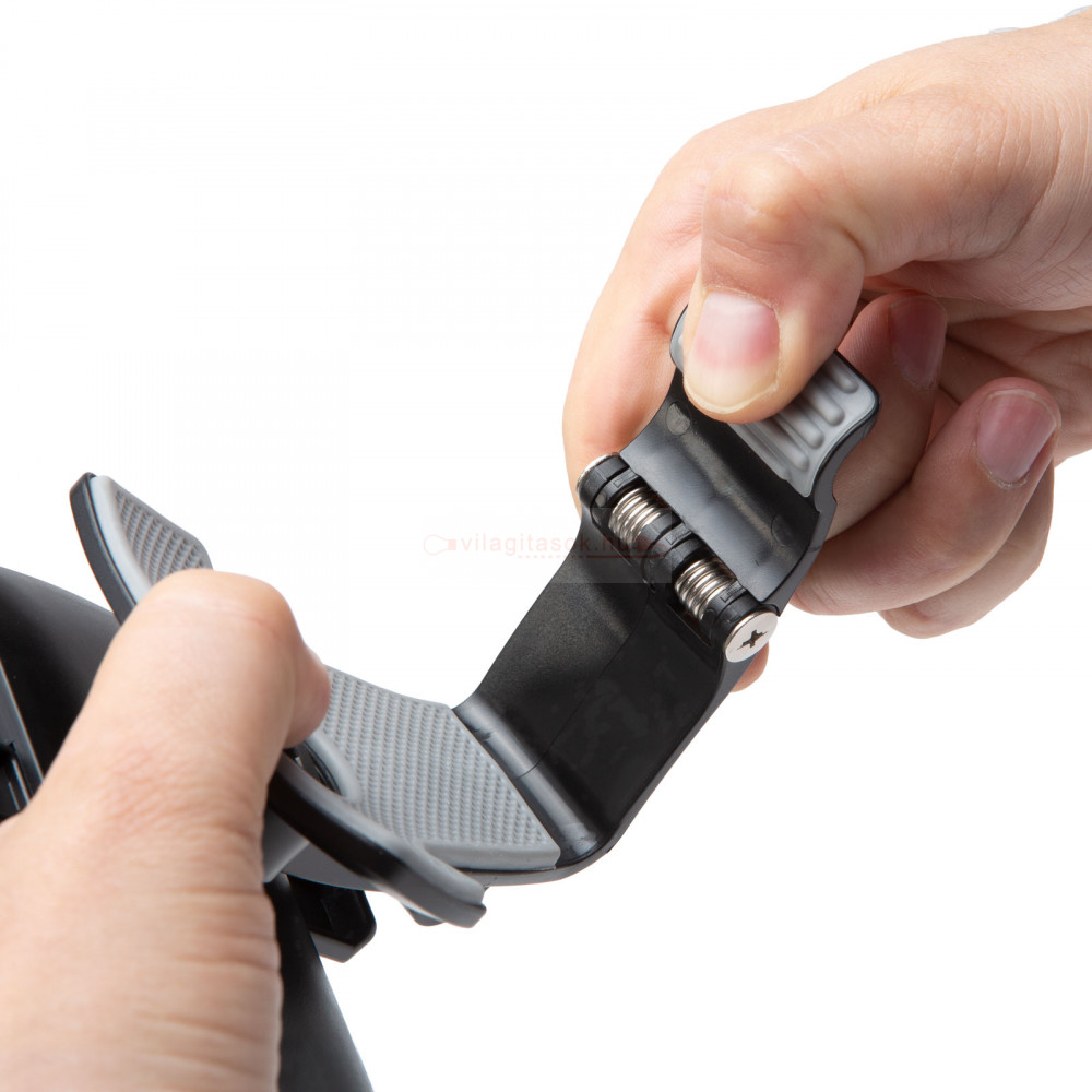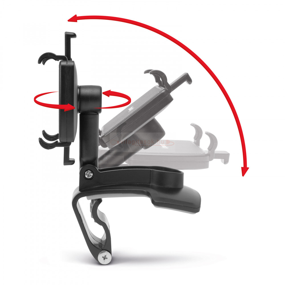 Bármilyen autóval kompatibilis, erős, csipeszes kivitelű telefontartó, amely a kormány mögötti műszerfal árnyékolóra rögzíthető, így látóterében tartja mobilkészülékét. Előnye, hogy nem szükséges tapadókoronggal rögzíteni a szélvédőn és nem akadályozza a szabad légáramlást sem a szellőzőrácsoknál. Ha több autót használ egy mozdulattal átrakható egy másikba autóba, a nagy feszítőerővel rendelkező rugó minden körülmények között stabilan tartja a konzolt.