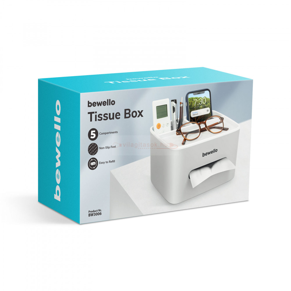 Papírzsebkendő, tisztítókendő adagoló - fehér - 205 x 160 x 120 mm