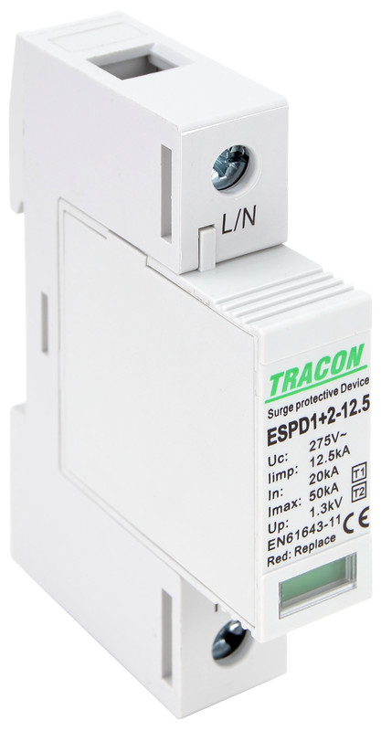 T1+T2 AC típusú túlfeszültség levezető, cserélhető betéttel 1P 12,5kA 275V