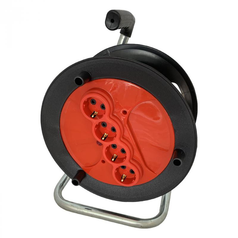 Ez az üres kábeldob ideális választás építkezésekhez, műhelyekhez vagy otthoni használatra, ahol hosszabbítók rugalmas kezelése szükséges. A 4-es dugalj 16A/230V terhelhetőséggel rendelkezik, és akár 50 méter H05VV-F 3G1.5mm² kábel befogadására is alkalmas. Masszív kialakítása hosszú távú használatot biztosít.