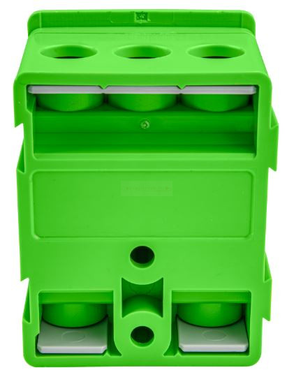 Kulcsszavak: fővezetéki sorozatkapocs, plombálható kapocs, villamos csatlakozó, zöld sorozatkapocs, 100A kapocs, elosztósín, csavaros csatlakozás