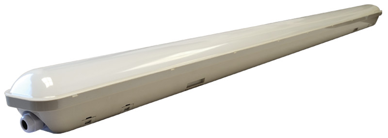 Acest corp de iluminat LED industrial etanș la praf și umiditate, cu putere de 56W, este conceput pentru a înlocui corpurile tradiționale cu 2x58W tuburi fluorescente. Modulul LED este integrat, astfel nu sunt necesare tuburi sau balast separat, ceea ce simplifică montajul și reduce costurile de întreținere.