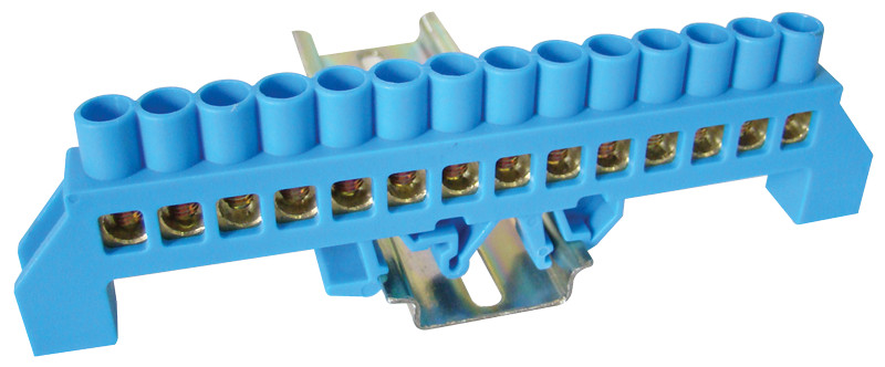 Szigetelt földelősín (N/PE), kék 230/400VAC, 100A, 8×12mm, 14P, IP20